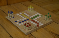 selbst ausgedachtes Spiel – wir gestalten ein Spielbrett, schnitzen die Spielfiguren aus frischem Weichholz und malen sie bunt an.