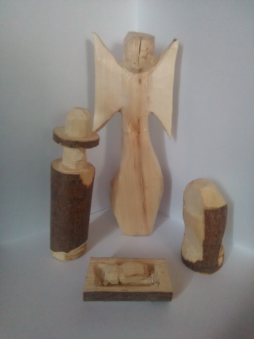Maria, Josef und ein kleines Jesuskind selber gemacht, mit ganz einfachen Mitteln und dennoch gut erkennbar! Teilnehmende des letzten Jahres können weitere Krippenfiguren schnitzen.